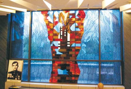 В центре зала героизма на люстре написано изречение пророка Исайи, которое выражает суть всей мемориальной экспозиции: «И дам я им в доме Моем и в стенах Моих память и имя, имя вечное дам им, которое не истребится…»